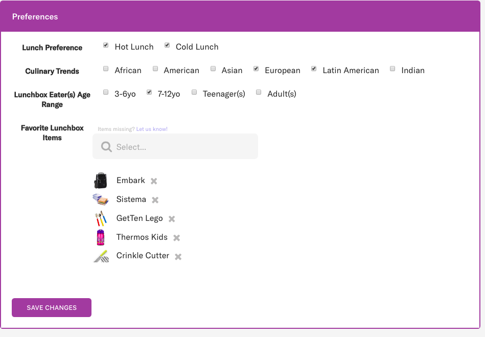 On Teuko.com, you can now update your Preferences in the Settings of your Profile and tag lunchbox items that simplify your daily routine.