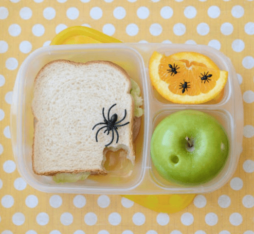 Look into props leftovers from Halloween. You will certainly find a few plastic bugs or spiders to sneak into the kids’ lunch bags. Imagine your child’s reaction when opening the lunchbox!