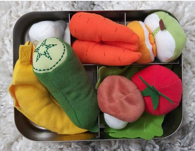 Almost every kid’s room counts a set of fake food or fake kitchen accessories. If you have this kind of accessory at home, you can easily borrow a piece and include a plush or toy food that your kid will recognize!