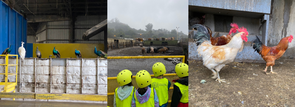 Stop 4 – The phase that delighted most the children was when we could see animals onsite: peacocks, porks, and chickens. They are part of the recycling center because they can contribute to the recycling. Peacocks, indeed, help scare seagulls that love sneaking around the trashes. Porks help eliminate the compost. And chickens can eat the bread donated by the supermarkets that could not sell it in time.