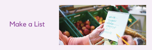 Before you set out for the market, make it a rule to create a grocery list to shop from. This will keep you from throwing unnecessary items in your cart while helping you plan ahead and stay organized.