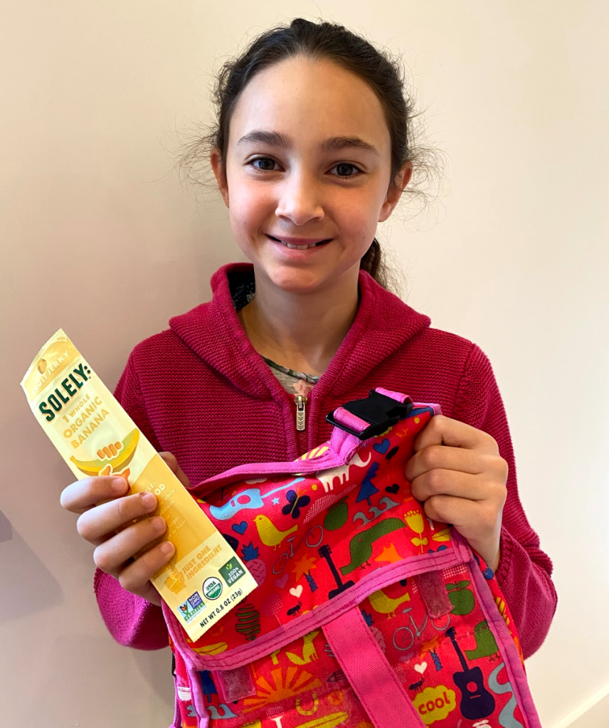 Have you ever heard your kid complain about an unfortunate banana crushed in the lunch bag or, worst, in the backpack? A Solely fruit jerky has just one ingredient: whole, organic fresh fruit. No sugar, preservatives or concentrates. If they have two ingredients, it’s just fresh fruit touched with cacao, nuts, or coconut. Banana, mango, or pineapple, the fruit is hand selected at harvest to guarantee the best possible flavor. It is then sliced, chopped and pressed into a strip… and voilà! Bye mushy bananas!