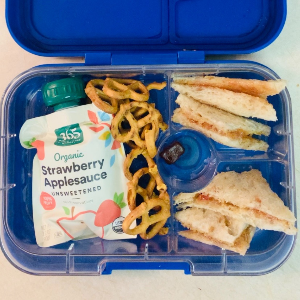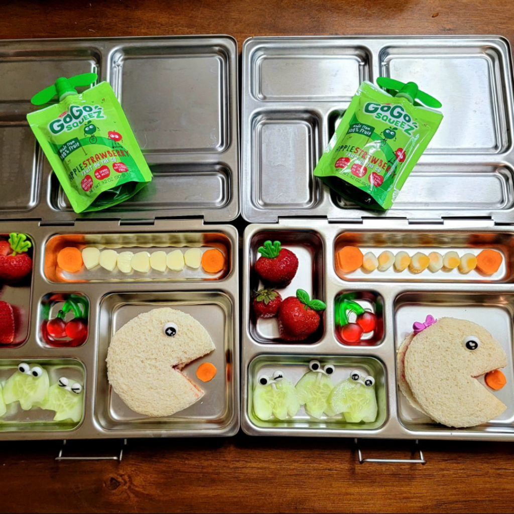 Mott’s is a brand pretty well-known among lunch packing families for their fruit sauce cups. But they also have squeezable pouches! The designs on the pouches are pretty friendly, with the fruit having funny googly eyes. And we love to see the product as the pouches are clear!